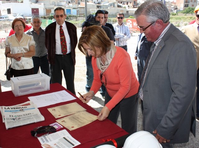 La consejera de Sanidad y Consumo, María Ángeles Palacios, y el alcalde de Campos del Río, Miguel Navarro, colocaron hoy la primera piedra del nuevo consultorio de Atención Primaria de Campos del Río en cuya construcción se invertirán 507.000 euros, de los cuales algo más de 457.000 los aportará la Consejería y el resto el Ayuntamiento.