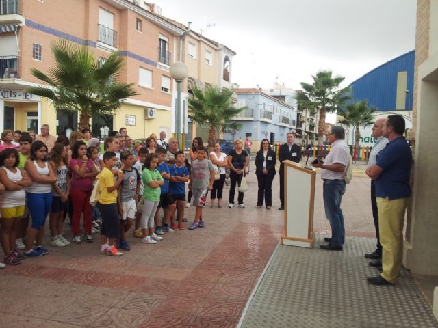 Los actos se han iniciado en el Albergue de la Estación de Campos del Río, con la recepción de más de un centenar de participantes entre asociaciones locales, personalidades del municipio, profesores y alumnos de 5° y 6ª de primaria del Colegio Público San Juan Bautista, a quienes se les ha hecho entrega de una mochila de avituallamiento.