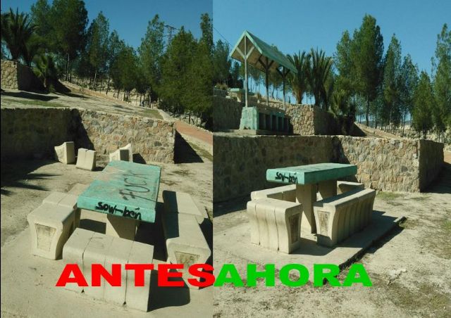 En el caso del Parque Natural, se ha procedido a la limpieza y reparación del entorno donde se encuentran las mesas y asientos de piedra, que tras sufrir actos vandálicos, se encontraban en un deteriorado estado. De esta manera, desde el consistorio, se da respuesta a los vecinos para que puedan usar de nuevo estos espacios públicos tan demandamos con garantía de seguridad y tranquilidad para los usuarios.