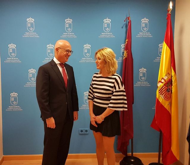 La alcaldesa de Campos del Río, María José Pérez Cerón mantiene una reunión de trabajo con el consejero de Empleo, Universidades y Empresa del Gobierno Regional, Juan Hernández para tratar diferentes e importantes asuntos relacionados con la actividad empresarial de la localidad.