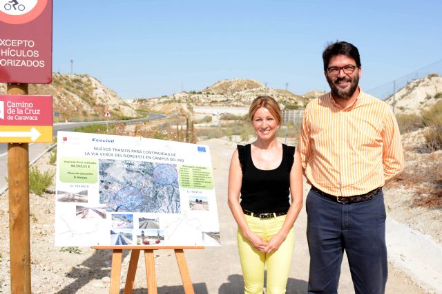 La alcaldesa de Campos del Río, María José Pérez Cerón junto con el director general del Instituto de Turismo, Manuel Fernández-Delgado, han visitado esta mañana los trabajos de acondicionamiento y mejora de dos nuevos tramos de la Vía Verde del Noroeste a su paso por Campos del Río, en los que se han invertido alrededor de 100.000 euros financiados al 80 por ciento con fondos europeos FEDER.