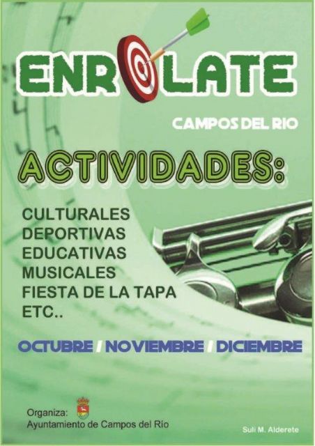 La alcaldesa de Campos del Río, María José Pérez Cerón, ha presentado una nueva edición del programa de actividades trimestral ‘Enrólate’ que en el último trimestre del año y hasta la llegada de la programación Navideña, llenará el municipio de actividades para todos los públicos.
